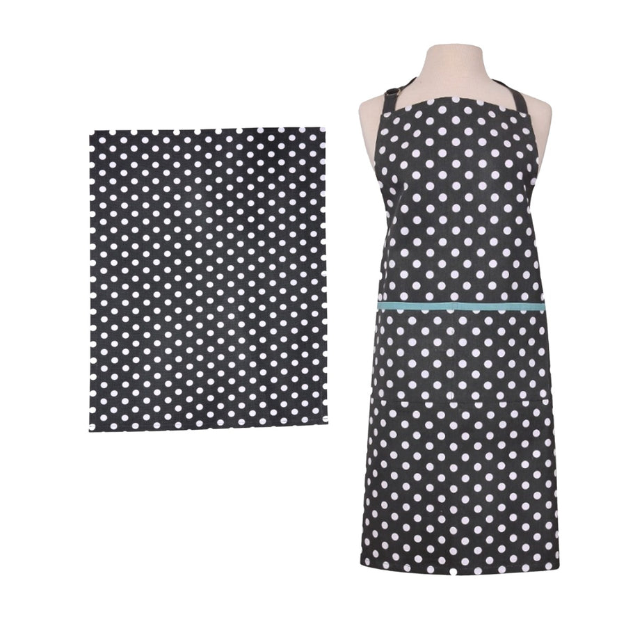 Dexam Polka Apron & Tea Towel Set - Slate Grey