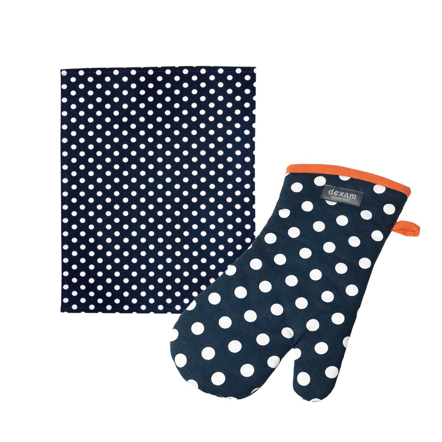 Dexam Polka Tea Towel & Oven Gauntlet Set - Indigo