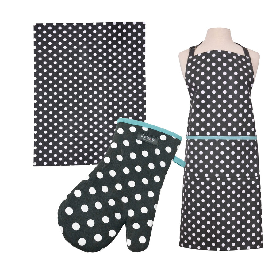 Dexam Polka Apron, Tea Towel & Oven Gauntlet Set - Slate Grey