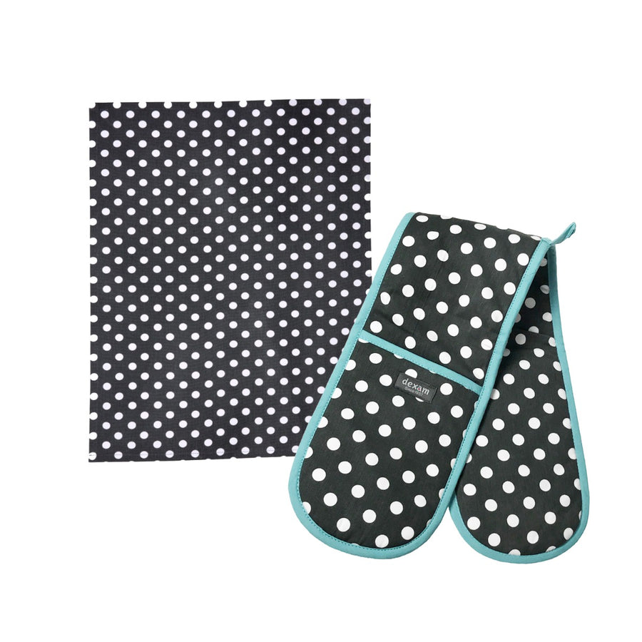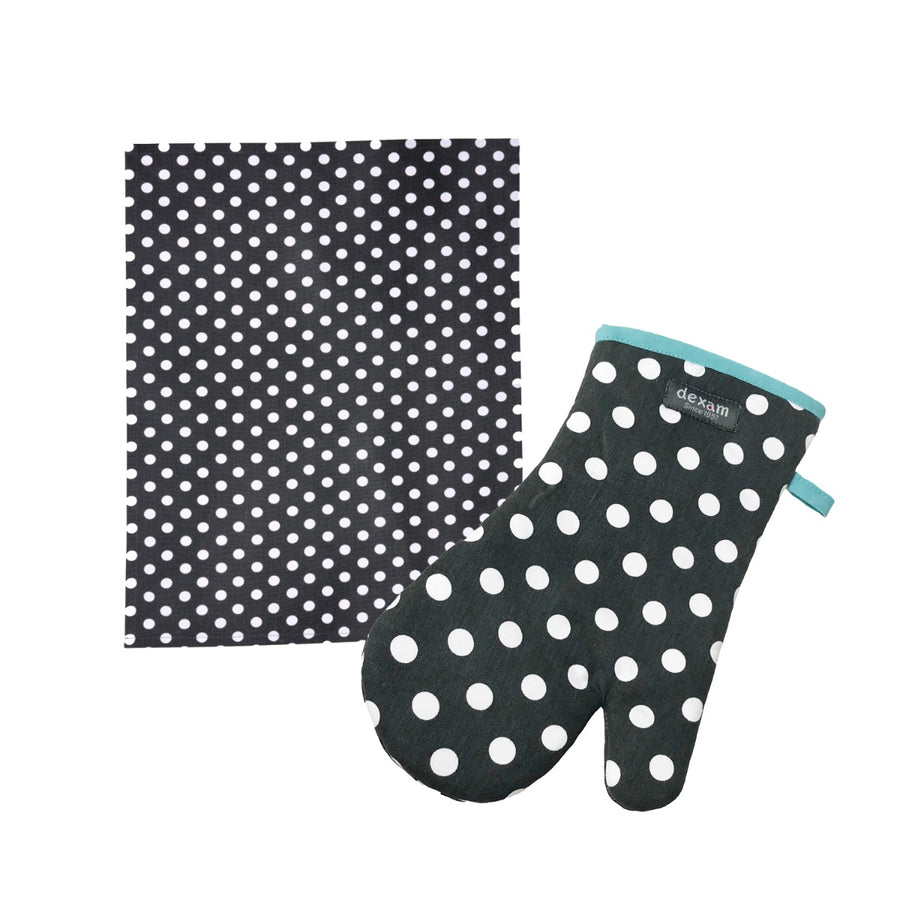 Dexam Polka Tea Towel & Oven Gauntlet Set - Slate Grey