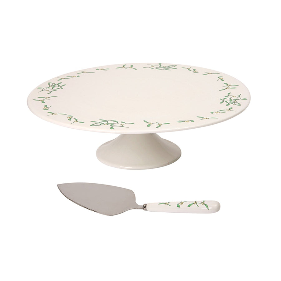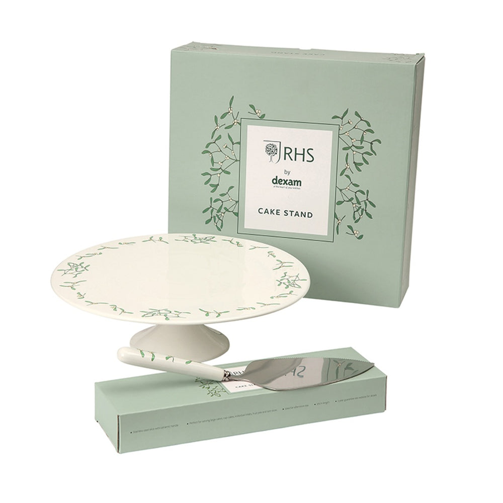 Dexam RHS Ivory Mistletoe Ceramic Cake Stand & Server Set