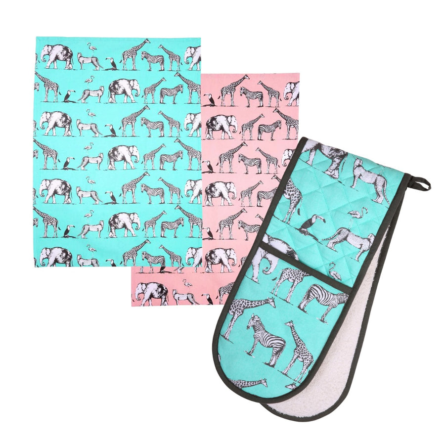Dexam Safari Tea Towels & Double Oven Glove Set