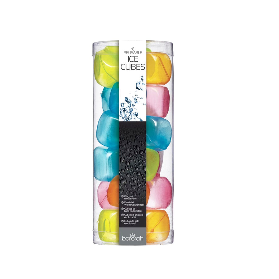 Quick, convenient, and will add a pop of colour to any drink! This set of 18 reusable ice cubes are perfect for keeping drinks nice and chilled. To use, simply wash, dry and freeze, then place in drink.