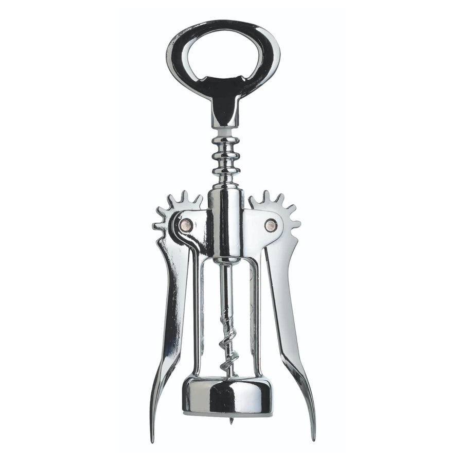 This classic double handed wing corkscrew with a mirror polished finish and a dual-purpose top handle that also conveniently opens crown top bottles.