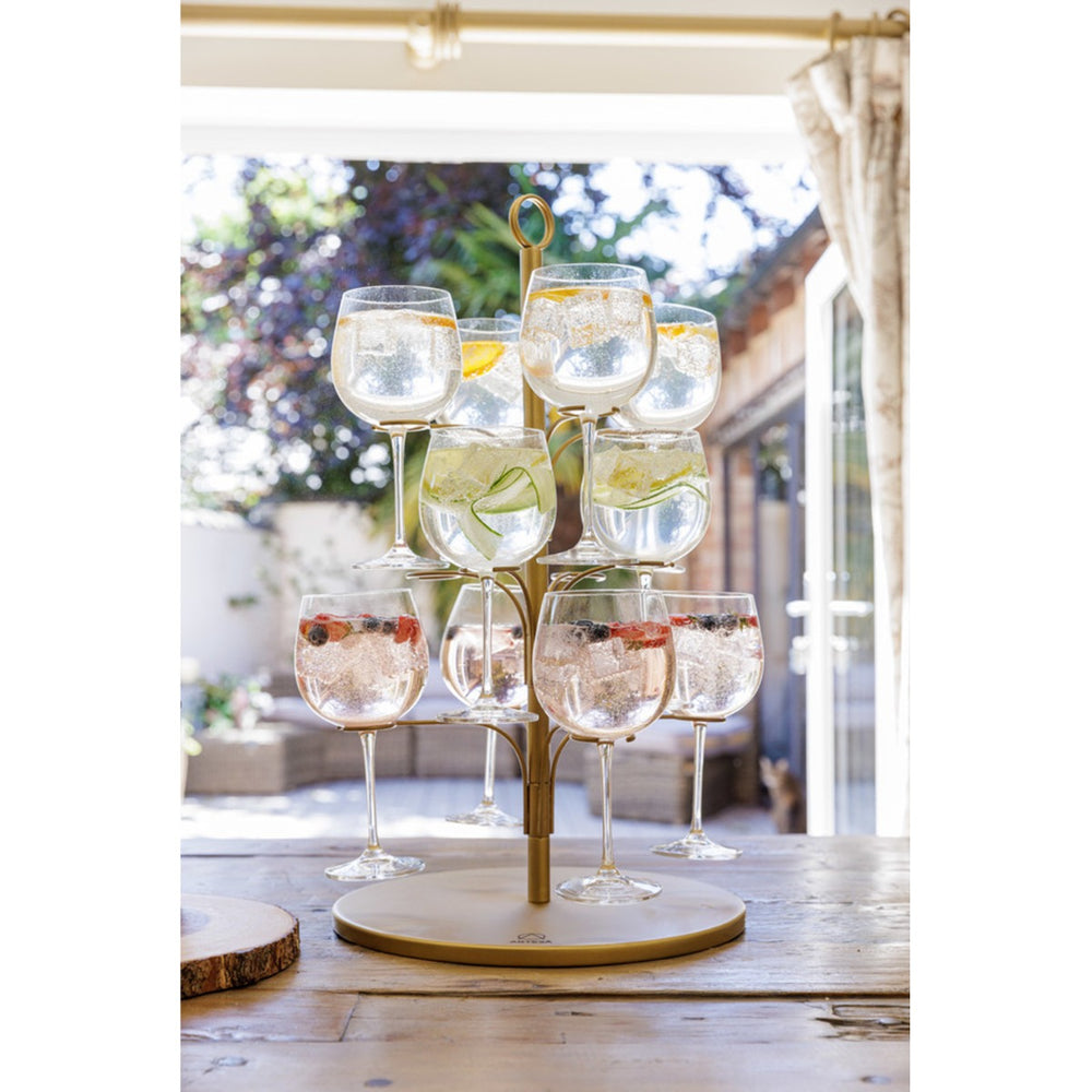 Elegant and incredibly decorative, this eye-catching serving tree is the perfect way to offer drinks to your guests! Made from durable iron, with a glimmering golden powder-coating, this stand holds up to twelve glasses or cones at any one time. Although it is thought to be used for holding cocktails or a gin mixer, its design is adaptable for holding cones of confetti or sweets - or desserts presented in a glass!