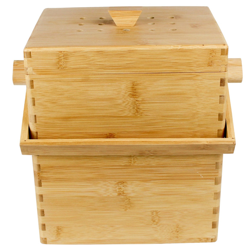 There is no need to worry about those food smells either, as this bamboo caddy has a close-fitting, vented lid which includes a carbon filter to help eliminate bad odours (1 spare filter is provided).