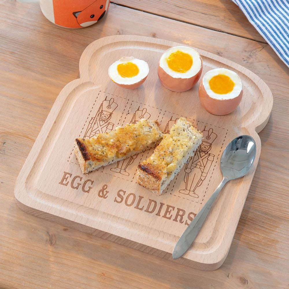 Along the middle of the board, it has adorable soldier engravings and is a perfect place to store your toast for dipping!