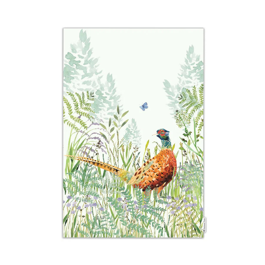 A great gift for country lovers, this organic cotton tea towel presents the beautiful rural scene of a pheasant paused amongst long grass and foliage, with a butterfly fluttering above. The ideal choice for drying the dishes, or simply displaying in your kitchen to add some countryside charm!