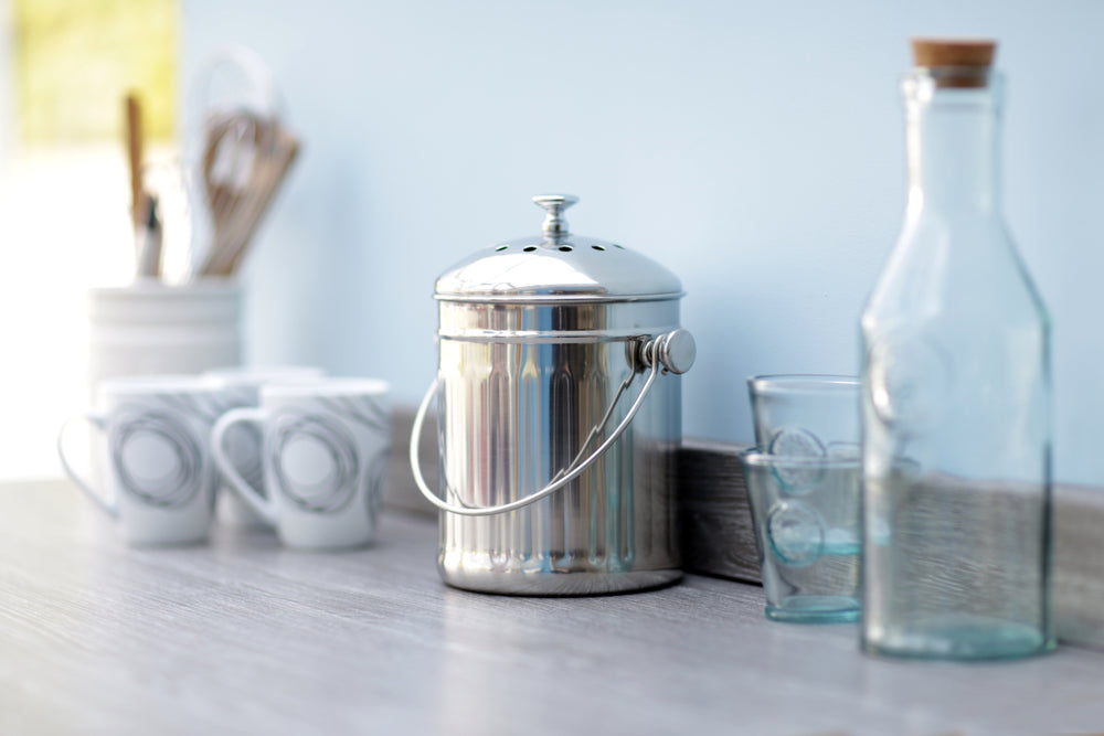 The base of this caddy is dishwasher safe, so it's easy to keep clean and can be used with or without a caddy liner! The lid includes a carbon filter for reducing smells and its size makes it perfect for smaller households or compact kitchens.