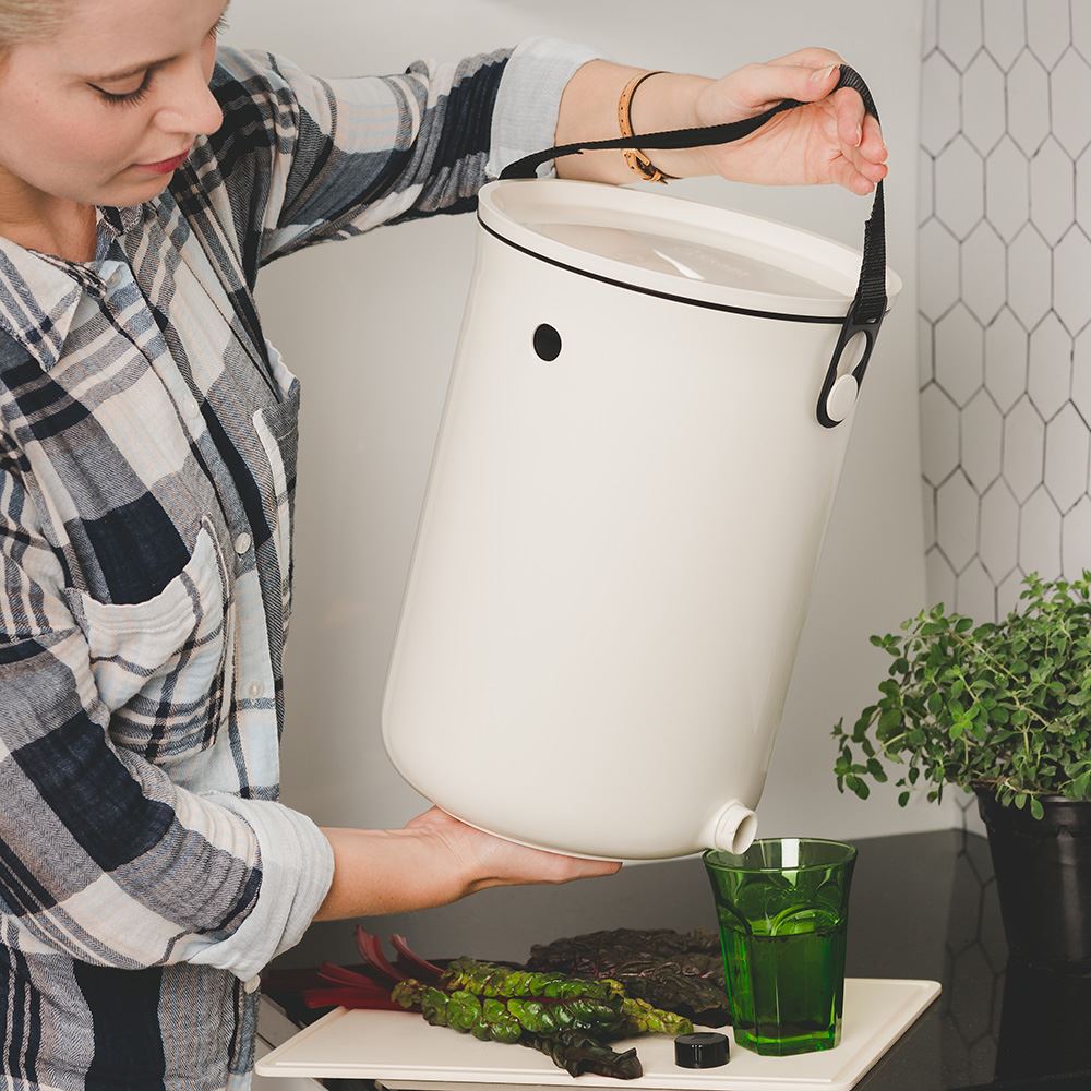 This composter enables the responsible management of bio-waste. Simply put your food waste in the bin, and with the help of the Organko bran (which triggers fermentation), you can produce a first-class compost base. Something that can be used as an organic fertilizer for your organic garden or house plants, and a natural drain cleaner.