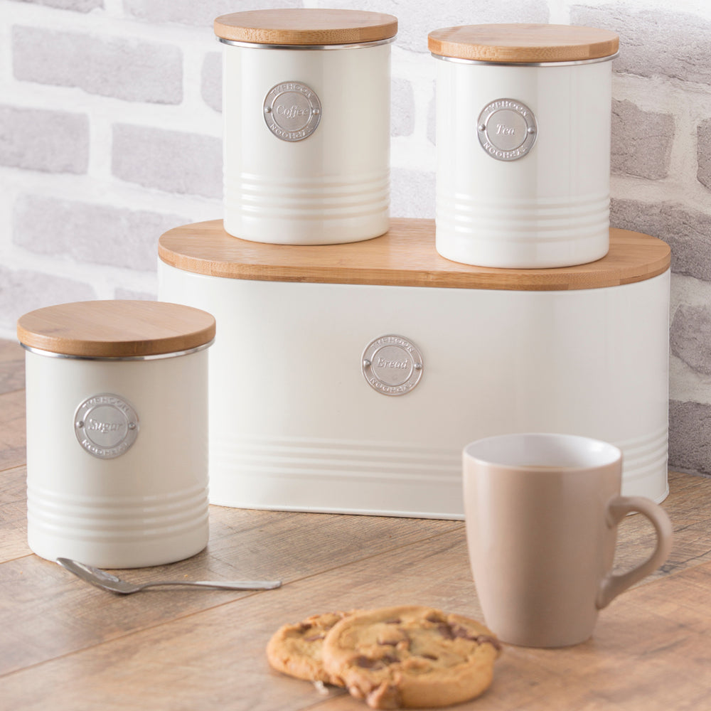 This set of Typhoon Living kitchen storage canisters is a perfect fit for nearly any kitchen! Containing tea, coffee & sugar canisters, a bread bin and biscuit tin, the items in this set (excluding bread bin) each feature an airtight silicone seal which guarantees long-lasting freshness. With a compact design, each item allows for a generous capacity, whilst ensuring they will fit into even the most crowded cupboards or worktops!