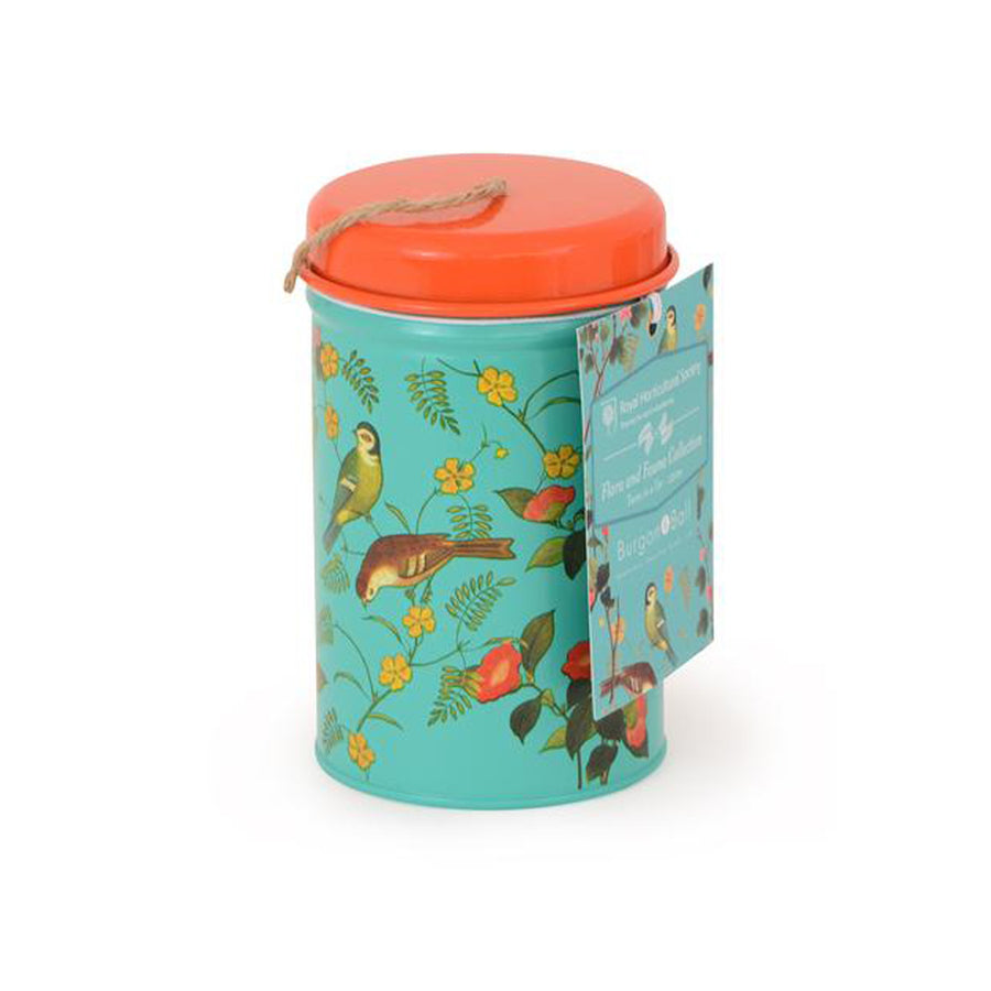 Part of the stunning RHS endorsed ‘Flora & Fauna’ collection, this twine tin displays a gorgeous print featuring dainty songbirds and delicate foliage. This design has been carefully selected from the RHS Lindley Library, with elegant Chinese watercolours and hand coloured engravings dating from 1819-1912.