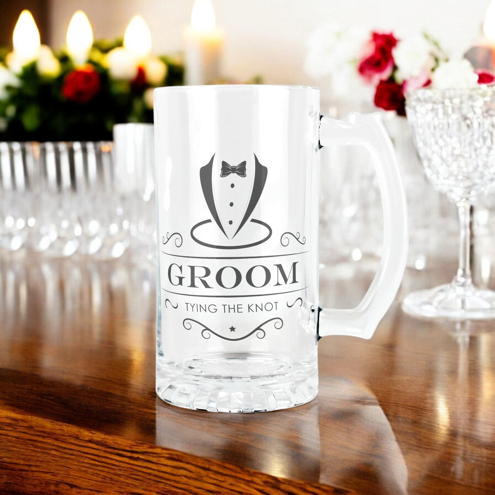 Mark the once in a lifetime moment of stepping into married life with these stylish glass steins! Ideal for gifting and for enjoying a refreshing drink during the planning of the big day, on the morning of the milestone event, and in the years following as you remember your fond memories of the day.