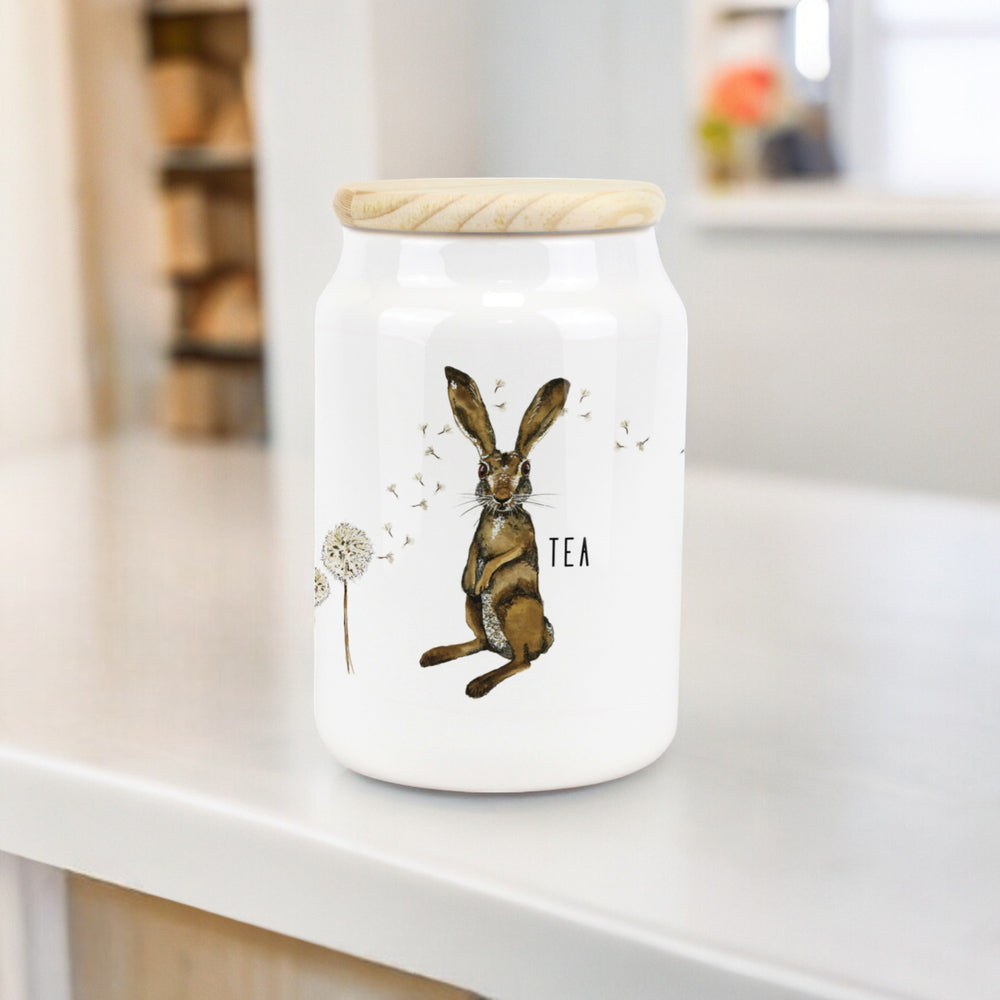 These countryside themed ceramic storage containers would be an elegant and stylish addition to any home! Featuring a majestic hare sat beside dandelion clocks, with fluffy flower seeds floating into the distance, they are ideal for adding a touch of farmhouse charm to your kitchen. Perfect for storing your hot drinks essentials, this range includes a variety of text options so that you can pick which canisters best suit your needs.