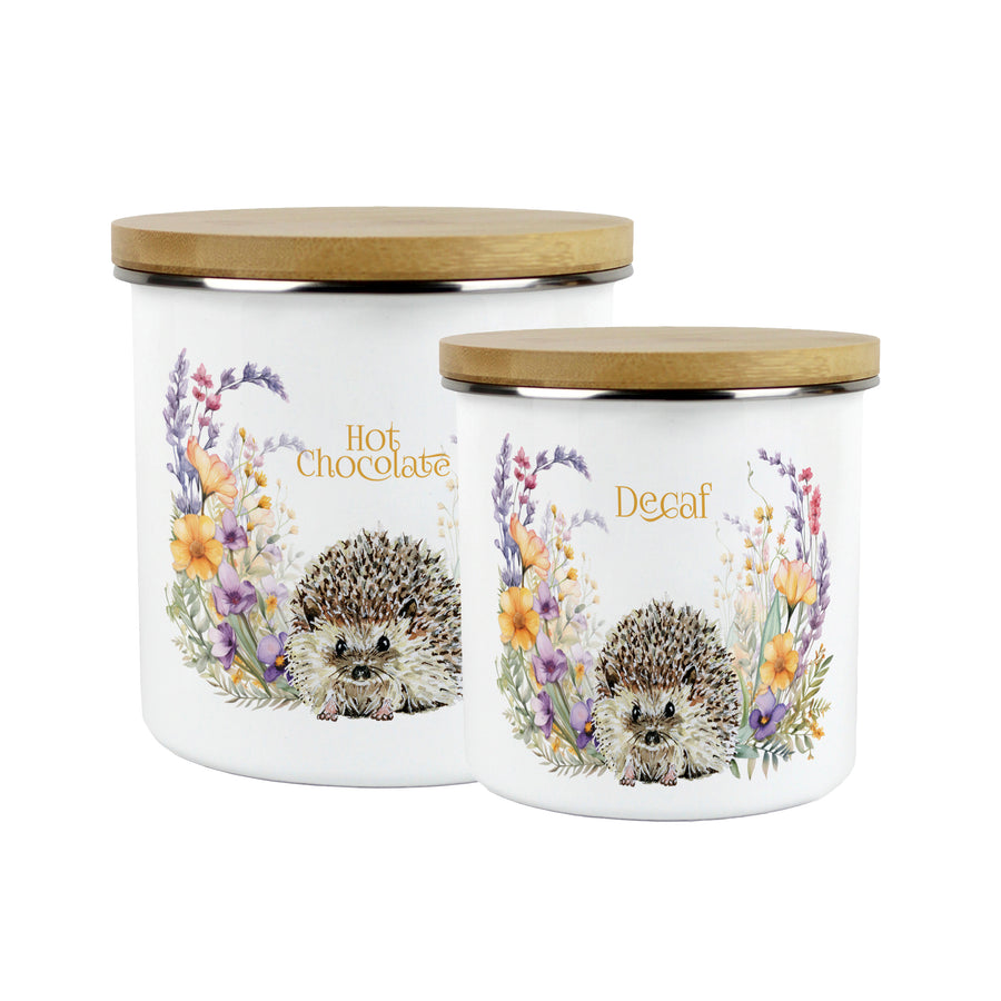 An endearing kitchen addition to any kitchen, this large enamel storage canister features an adorable hedgehog named Harriet posed amongst blooming flowers and foliage. The sturdy container is ideal for storing your hot drinks essentials, ensuring you have everything you need to enjoy a brew and remind yourself after a stressful day, everything 'quill' be okay!