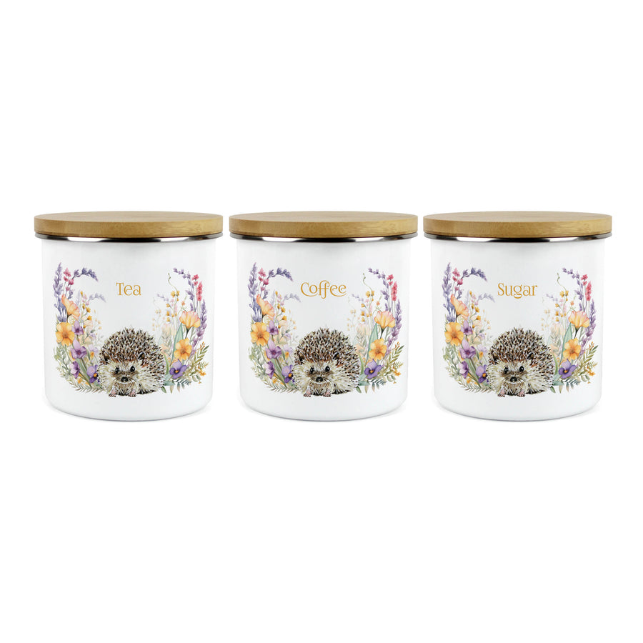 Purely Home Harriet Hedgehog Enamel Tea, Coffee & Sugar Canister Sets