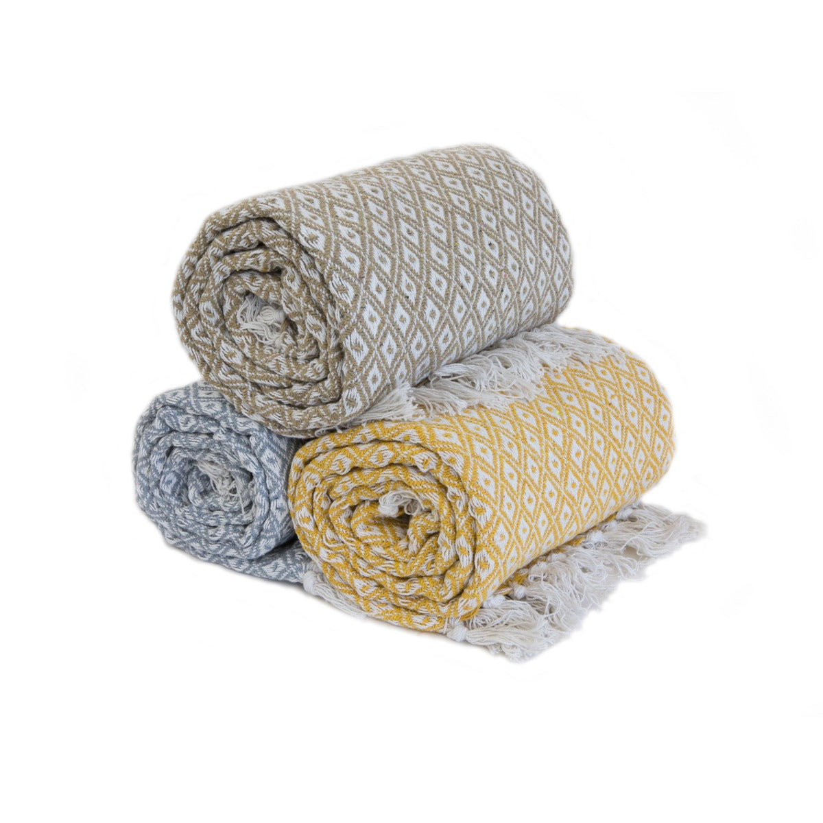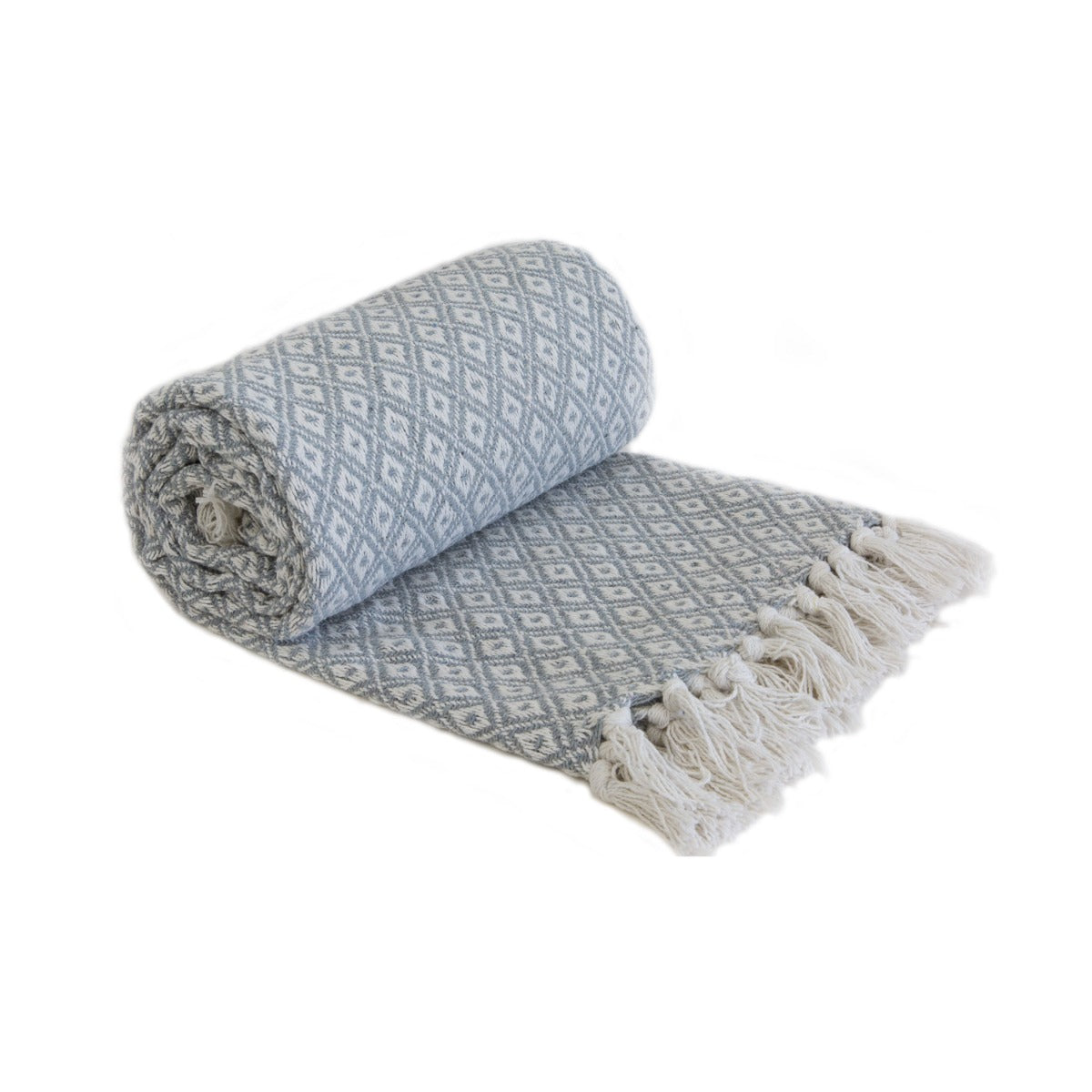 Featuring a stylish diamond pattern, this soft, recycled cotton weave throw is the perfect accessory to your home. With complementing tassels, this silver grey coloured blanket will add brightness and texture to any room in your home.