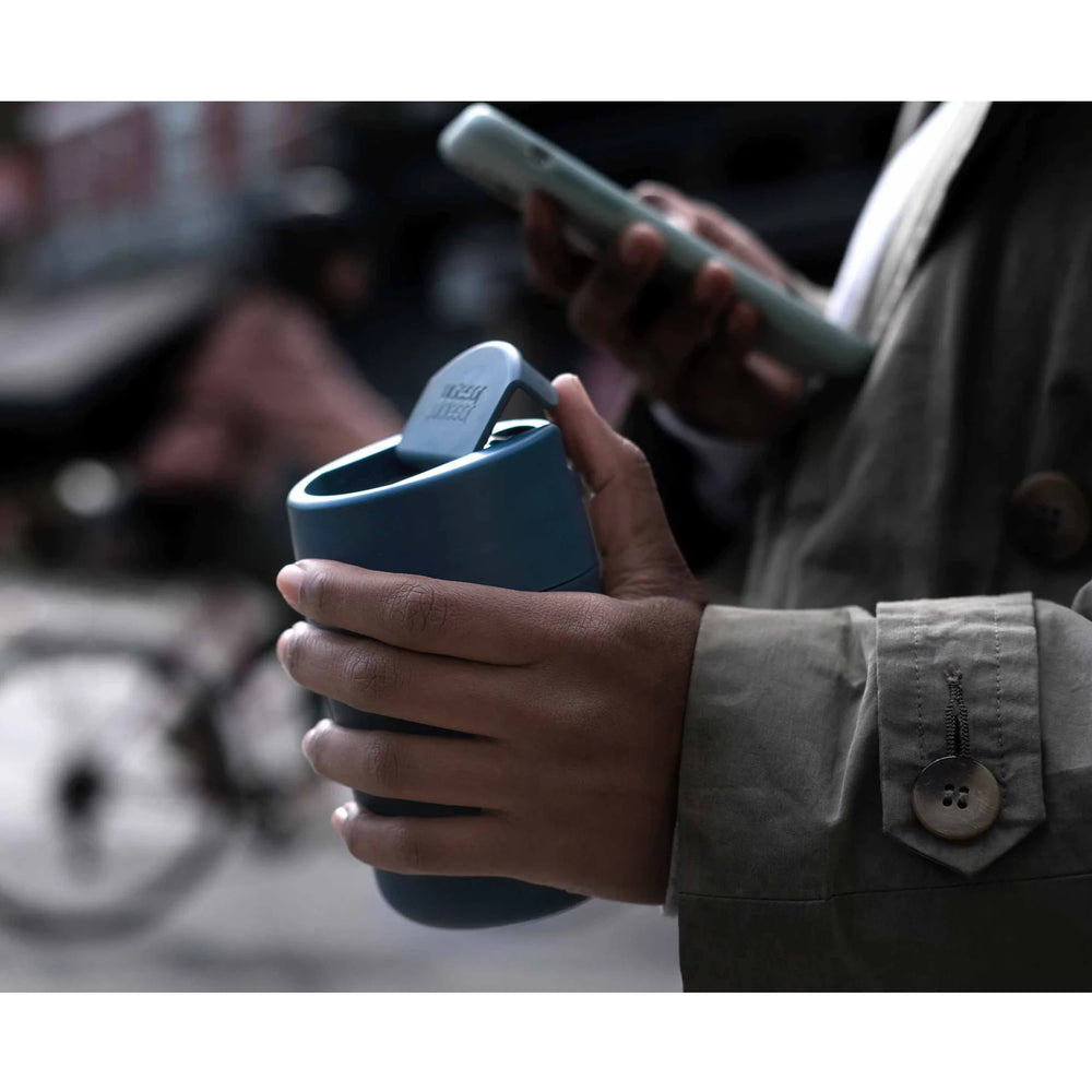 Relish the flavour of your favourite hot drink on-the-go with this leakproof travel mug! The clever design of this mug features a non-slip grip exterior to offer you complete comfort while on the move. It's flip-top cap also means that the area you would touch with your lips when drinking from the cup would be completely covered, ensuring you will not be compromising on hygiene when using this reusable drinkware option. With a modern, smooth matte blue appearance, this BPA Free coffee cup would make a lovely eco-friendly gift for that person who is always on the go!