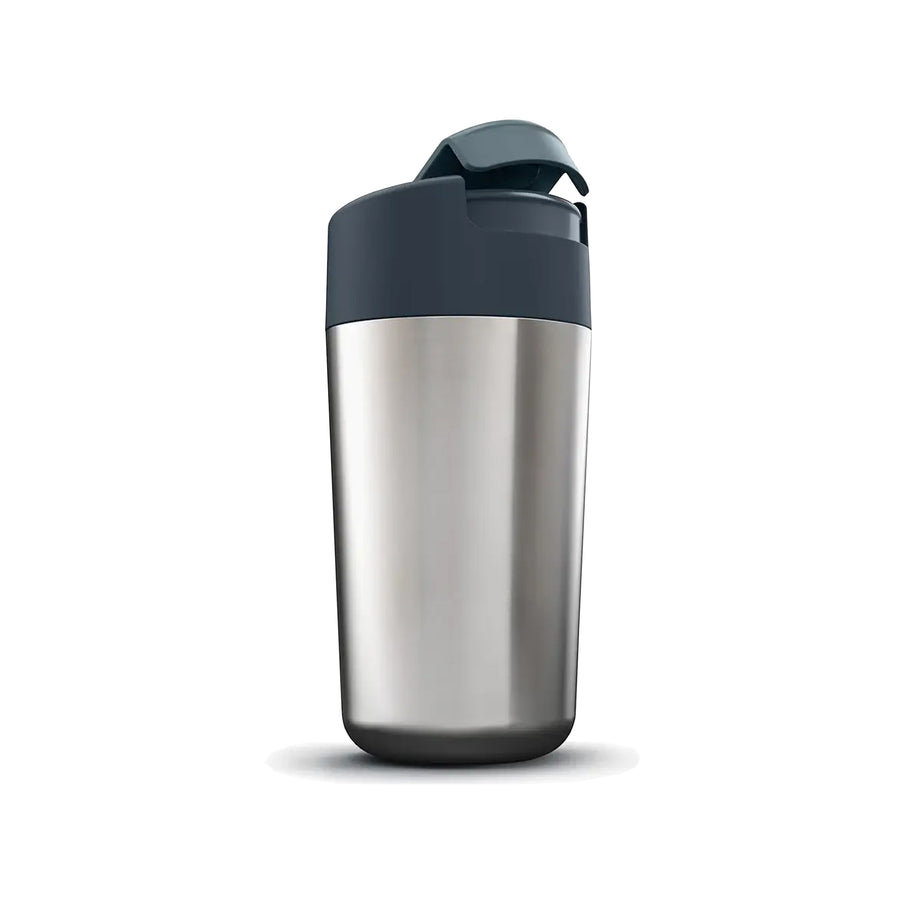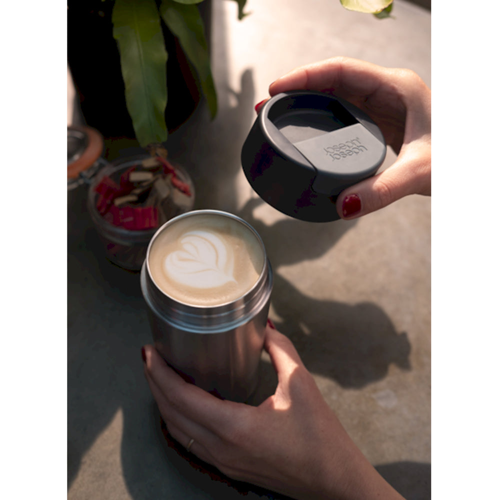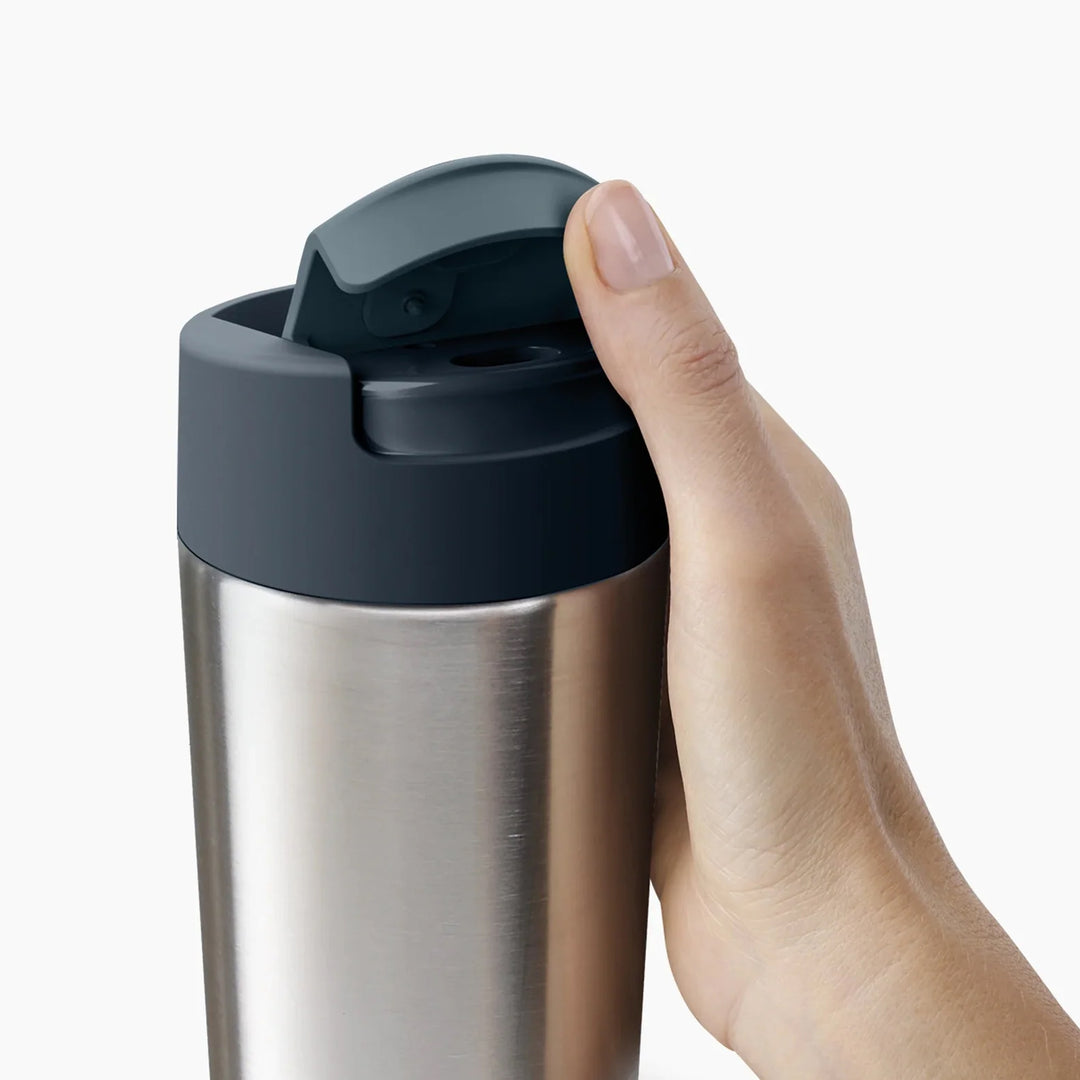 Relish the flavour of your favourite hot drink on-the-go with this stainless steel travel mug! The clever design of this mug features double-walled, vacuum insulation to help your drink stay warm while the exterior remains cool to touch. It's flip-top cap also means that the area you would touch with your lips when drinking from the cup would be completely covered, ensuring you will not be compromising on hygiene when using this reusable drinkware option. With a stylish, silver steel appearance, this BPA Free coffee cup would make a lovely eco-friendly gift for that person who is always on the go!