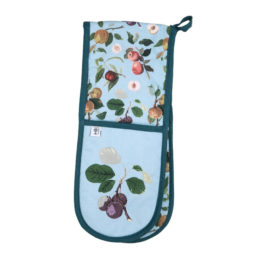 This double oven glove is a perfect fit for any kitchen! With a beautiful blue base and fruit print, including apple, nectarine and plum varieties, this design is inspired by the works of illustrator William Hooker (1779-1832), sourced directly from the Royal Horticultural Society Lindley Collections - which houses one of the largest collections of botanical prints, illustrations and plates in the world.