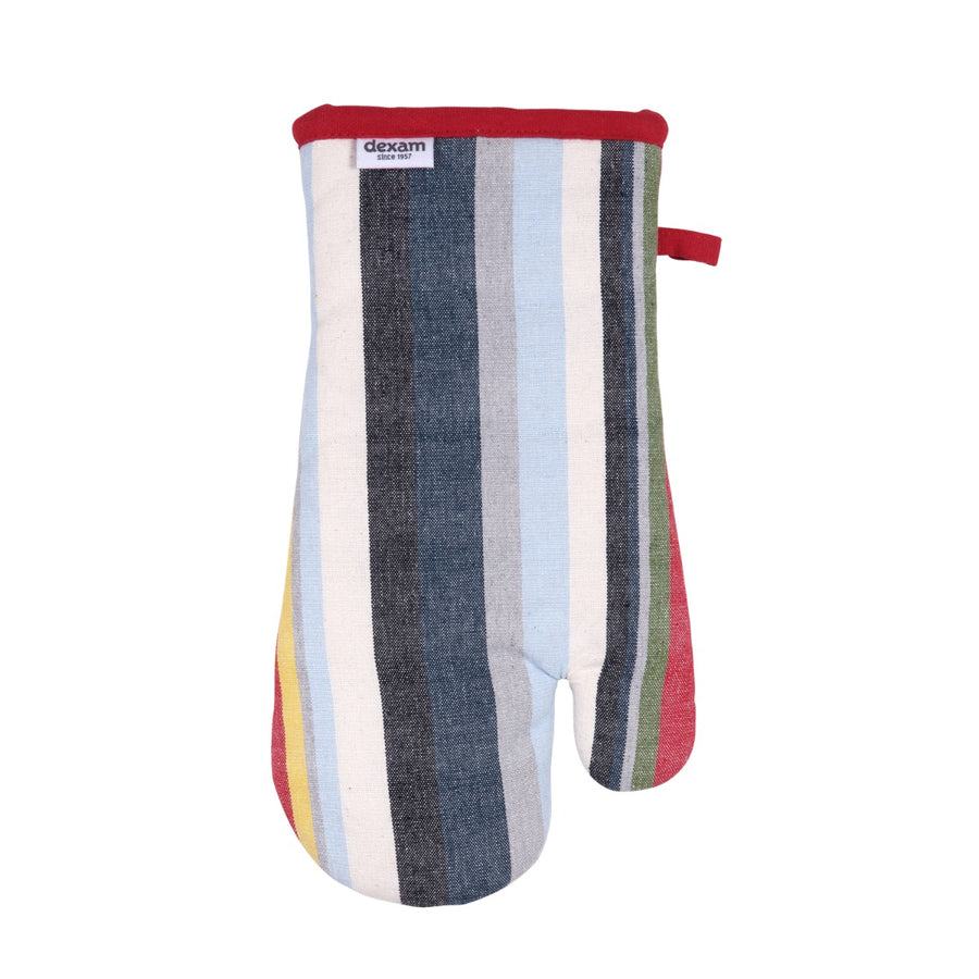 Stay sustainable and fashionable in the kitchen with this vibrant oven glove, not only a feast for the eyes but also a conscious choice for the planet. Crafted from 60% premium recycled cotton, this oven gauntlet showcases a captivating blend of colours in its striped design.