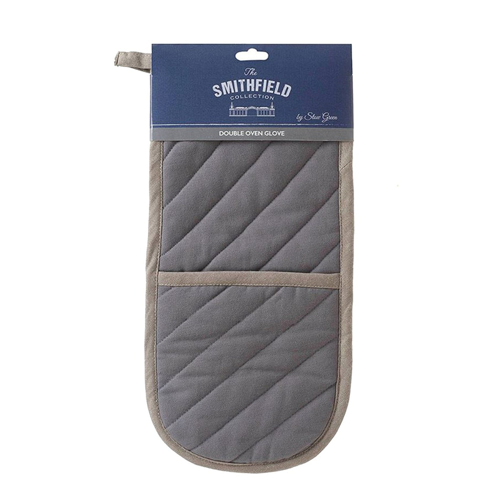 Inspired by the styles of the famous Smithfield Market - this cotton double oven glove is a nostalgic addition to your home! Featuring a contrasted trim detail and woven label across a sturdy cotton exterior and padded out with a comfortable interior.