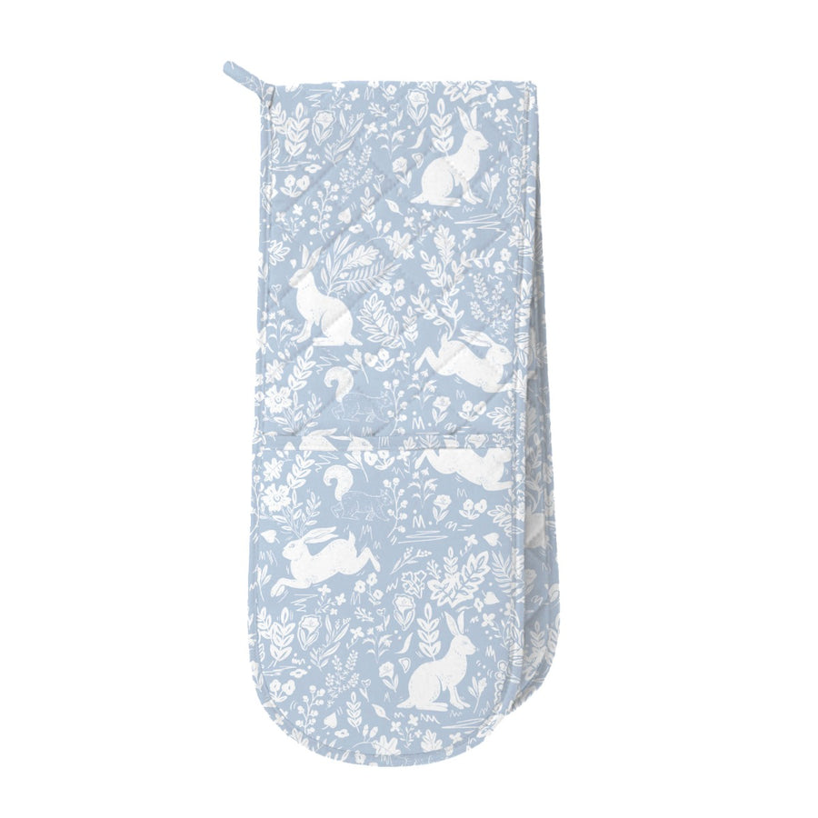 Featuring an intricate pattern of flora, fauna, and animals on a calming, natural feel light blue background, this stunning double oven glove is perfect for adding a touch of elegance and charm to your kitchen while providing practicality and functionality.