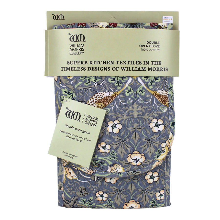 Brighten up your kitchen with this beautifully iconic William Morris pale blue Strawberry Thief double oven glove. The timelessness of this design is guaranteed to be a conversation starter, you'll never want to use it, so it can always be on display.