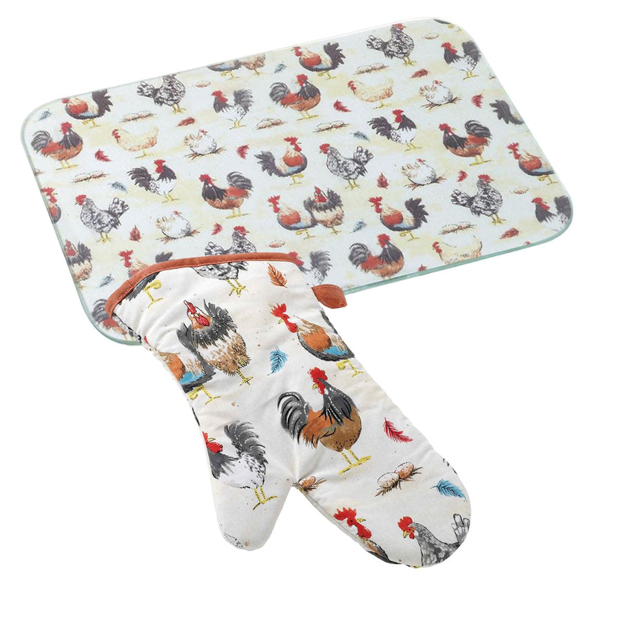 Stow Green Rooster Worktop Protector & Oven Gauntlet Set