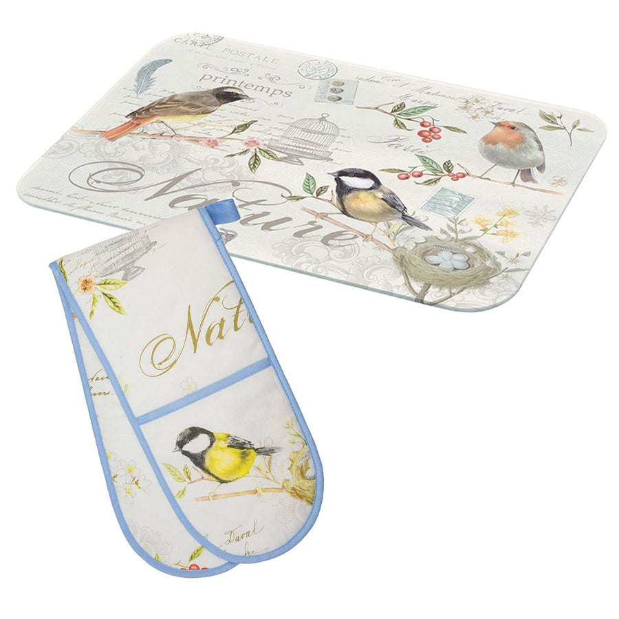 Stow Green Songbird Double Oven Glove & Worktop Protector Set
