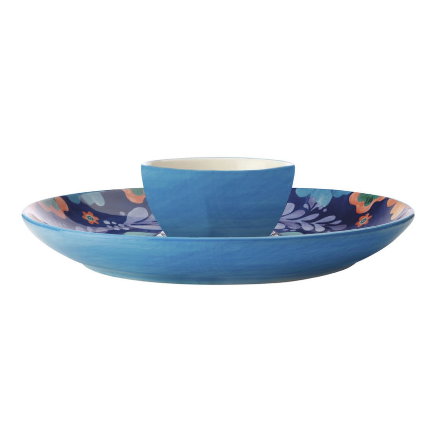 Immerse your dining experience in the refreshing ambience of the Mediterranean with this stunning chip & dip serving set! With a timeless floral pattern inspired by Italian ceramics, this platter & bowl set is perfect for serving various tortilla chips & crisps, with yummy, flavoursome dips! A delightful addition to your summer dining.