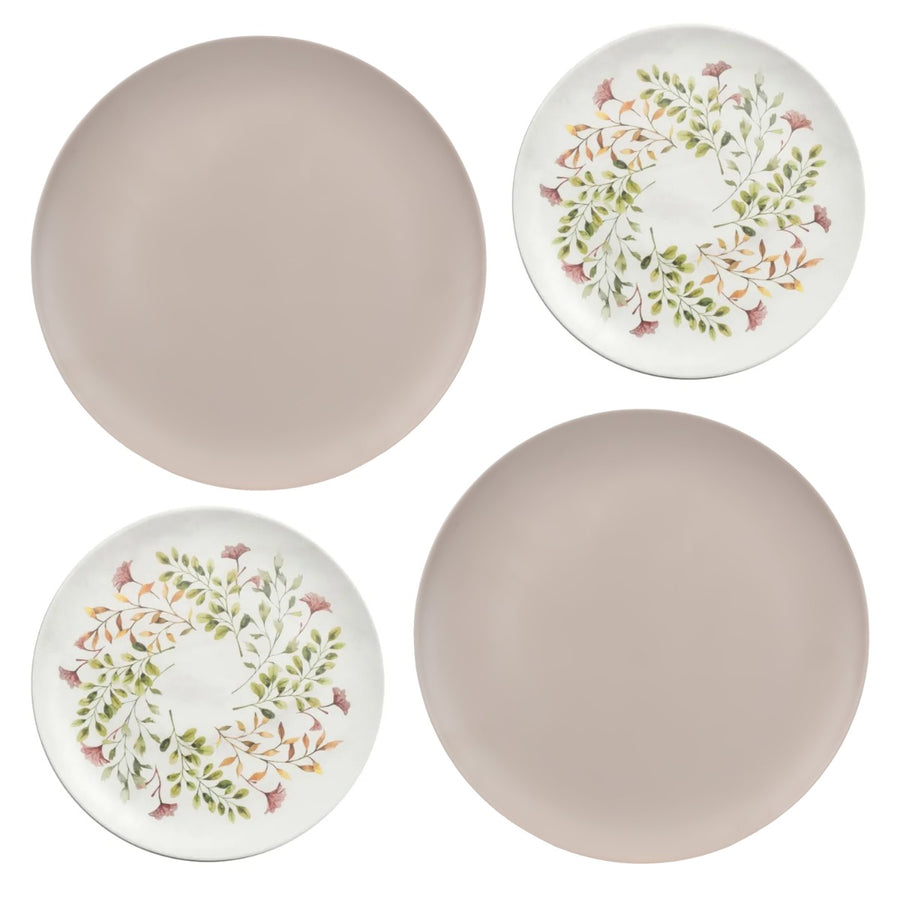 Mediterranean Garden Melamine Dinner & Side Plates Set - Taupe