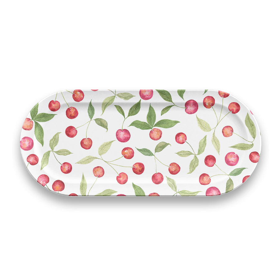 Sweeten up your table with this fun cherry print oval platter/tray! This cheerful design is ideal for adding a fresh pop of colour to your outdoor dining. With a matte finish, this platter is BPA free, as well as break, scratch and chip resistant - just the thing for use outdoors.