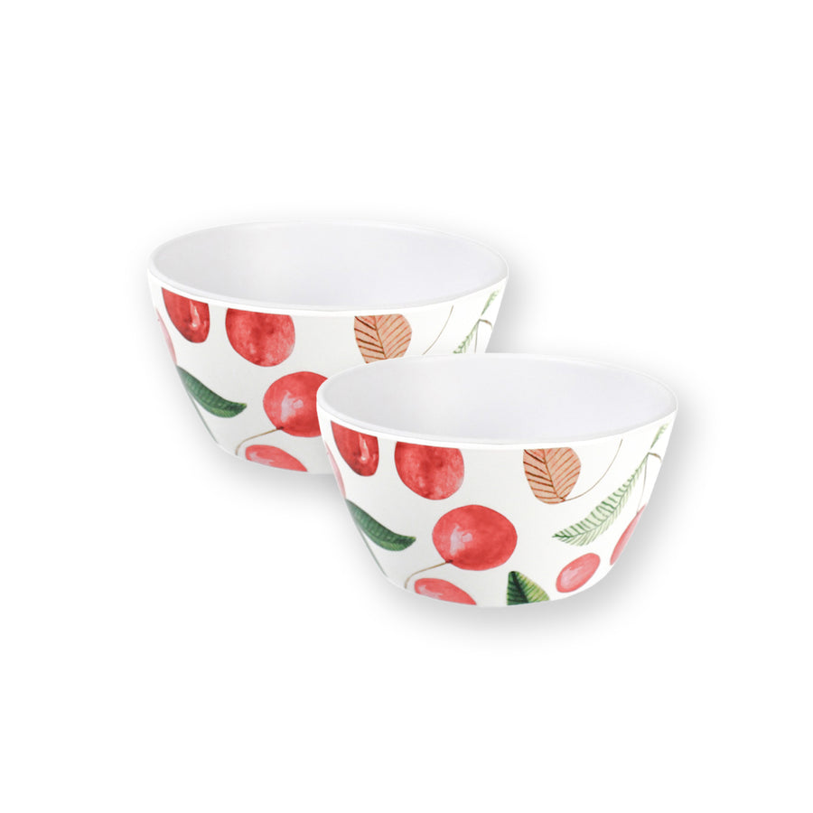 Sweeten up your table with this set of fun cherry print dipping/dessert bowls! This cheerful design is ideal for adding a fresh pop of colour to your outdoor dining. With a matte finish, these bowls are BPA free, as well as break, scratch and chip resistant - just the thing for use outdoors.