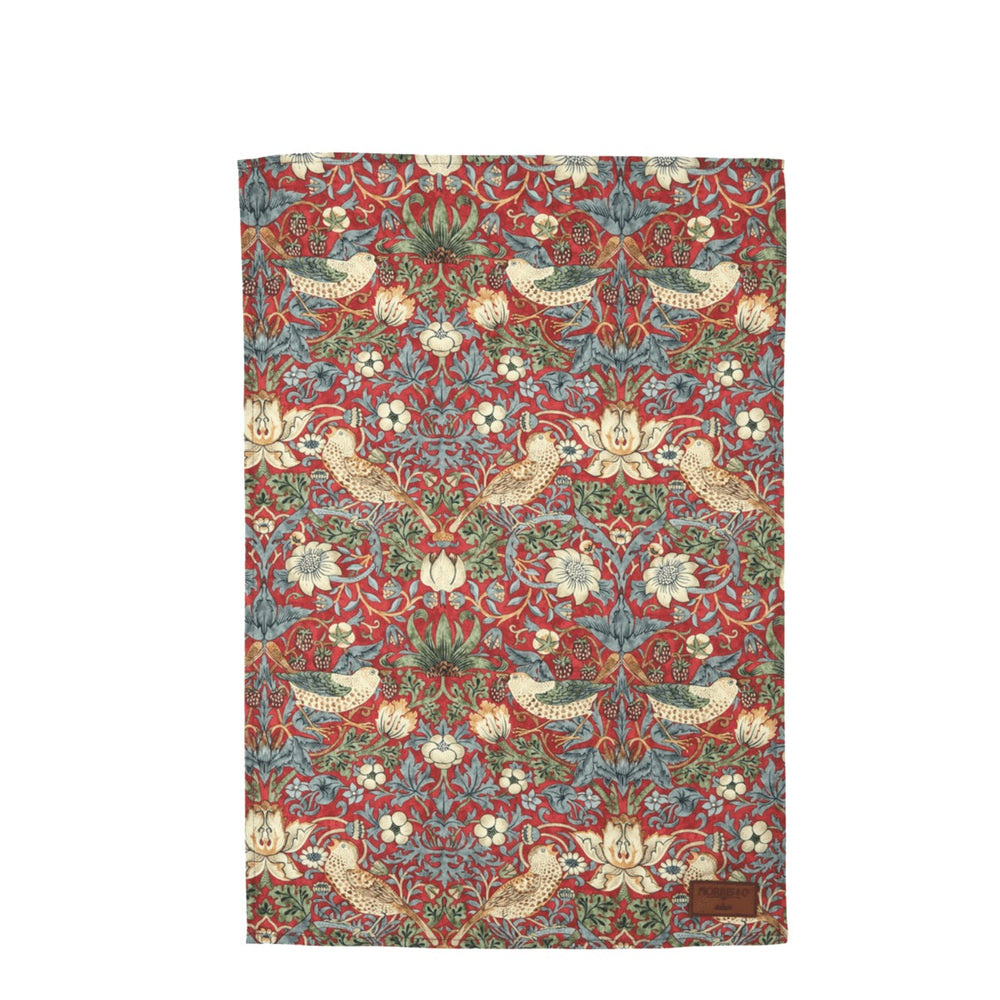 This stunning tea towel set represents the well established brand Morris & Co, inspired by the beauty of nature. Featuring a bold, bright design developed from the original branding of William Morris' company, which was founded in 1861. Capturing the authentic nature of an original Morris design, one tea towel in this set displays the well-known 'Strawberry Thief' design on a red background, while the second tea towel in the set showcases a complimenting floral design.