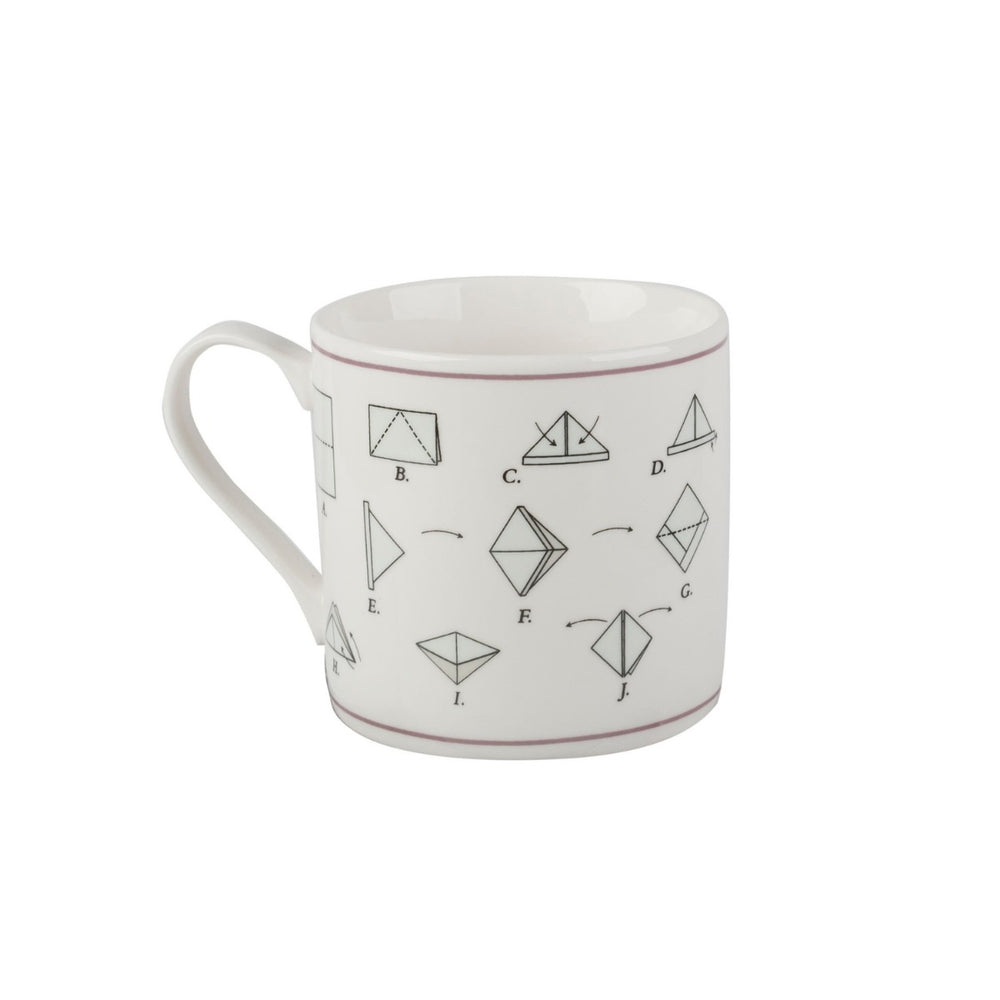 Let your morning drinks routine set sail with this fun fine china mug! Featuring a guide on how to assemble a classic paper boat, this mug would make a perfect gift for sailing enthusiasts or craft extraodinaires. Packaged in a gift box, this mug is both dishwasher and microwave safe for convenience.