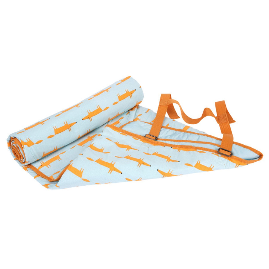 An adorable picnic blanket, perfect for those summer afternoons in the park! Featuring the mischievous Mr Fox from the Scion Living range on a blue background, this fun blanket rolls up neatly with a buckle strap to keep it tidily packed away. The straps also features a handle, making it easy to carry your picnic blanket with you on any sunny outdoor adventures!