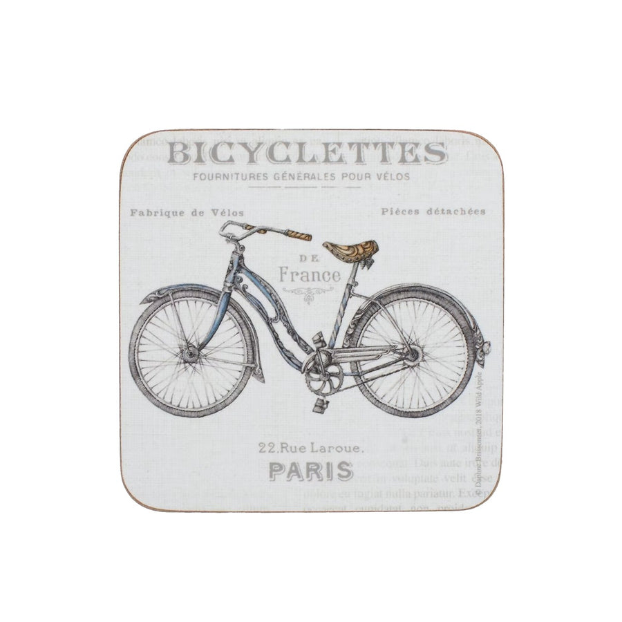 Be transported to the quaint beauty of France within your home with this stylish design from Creative Tops. Featuring a steampunk-inspired bicycle and French text. This set of six coasters are ideal for use in your kitchen or dining room, and have a lacquered finish with a cork backing which is heat resistant to 120 degrees.