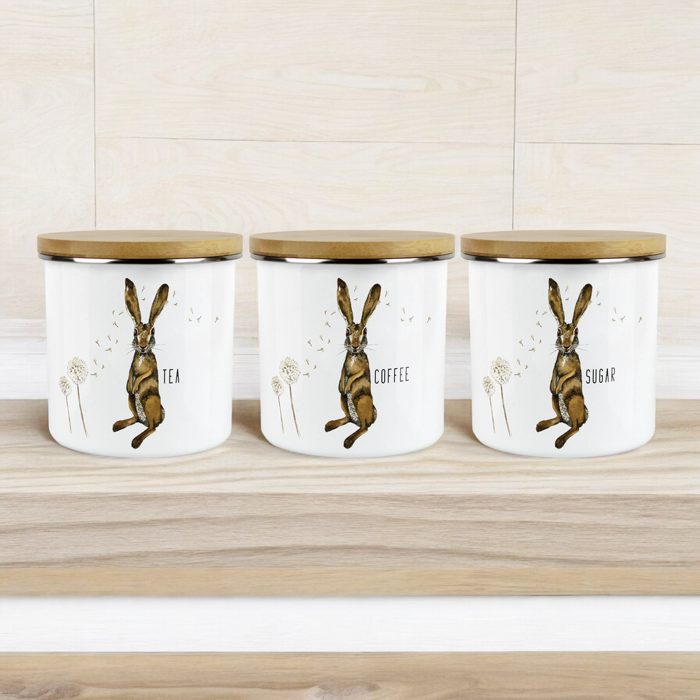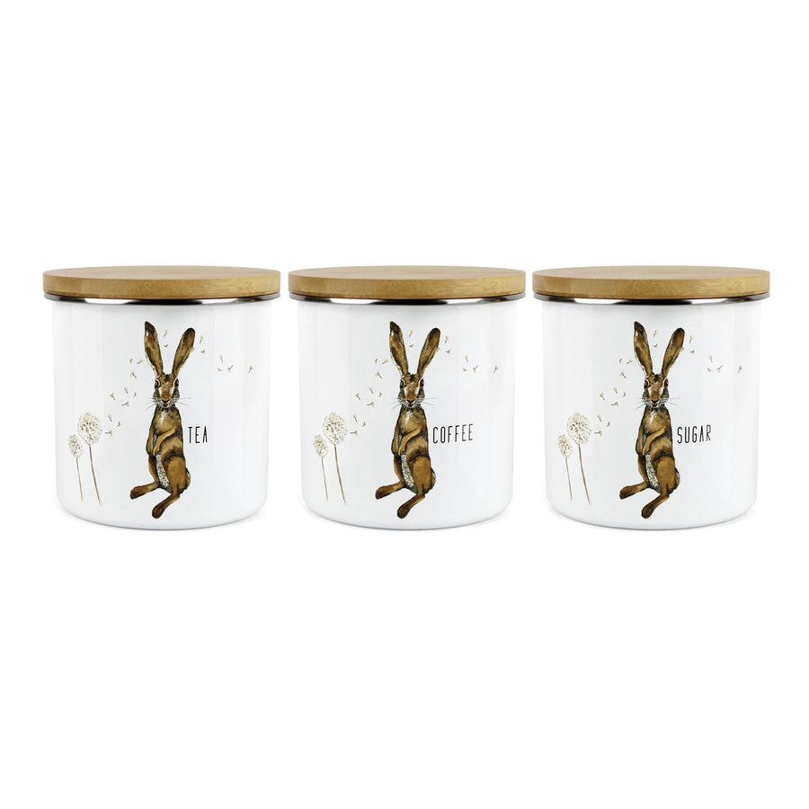 Purely Home Hare & Dandelions Enamel Tea, Coffee & Sugar Canister Sets