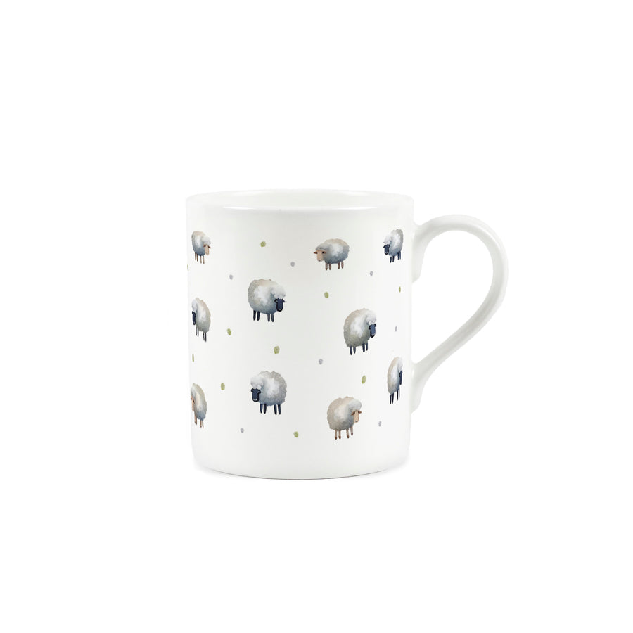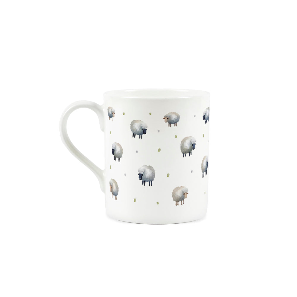 Whether you're a lover of spring when the joy of new baby lambs fill the fields of the countryside, or you simply adore the cuteness of woolly sheep at any time of year, this small bone china mug is just the thing for you! The sweet design features cartoon-style illustrations of sheep with green polka dots spotted in between - ideal for enjoying a refreshing cup of tea.