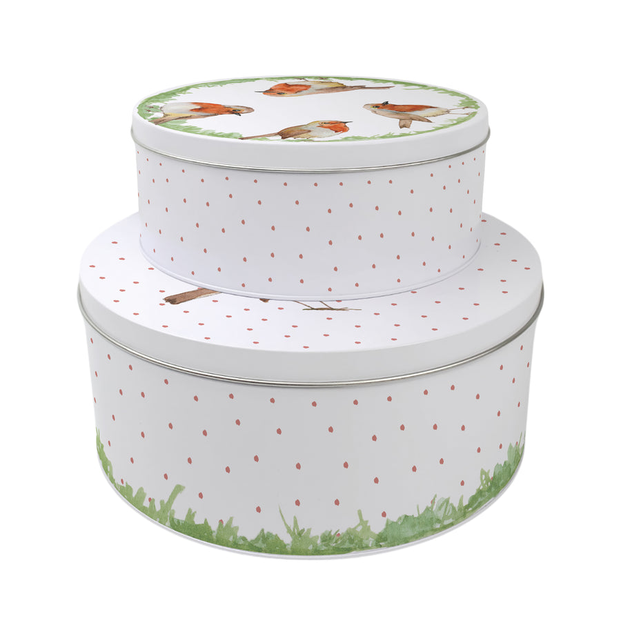 With a sweet painted robins print, designed by artist Rhiannon Chauncey, this set of two round cake tins are ideal for storing lovingly homemade cakes and bakes. Alternatively, they makes a great gift for a keen bird watcher or lover of nature! Available individually, or as a mixed set of two.