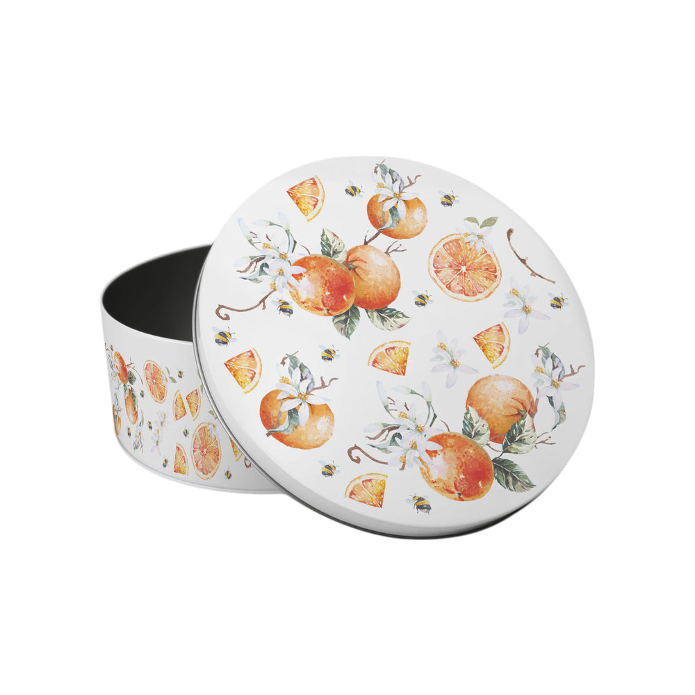 Perfect for gifting to a lover of orange cake and fruity treats, this summery set of round cake tins display a vibrant tangerines design with white flowers and bumblebees - sure to bring some 'zest' to any home-baked goodies!