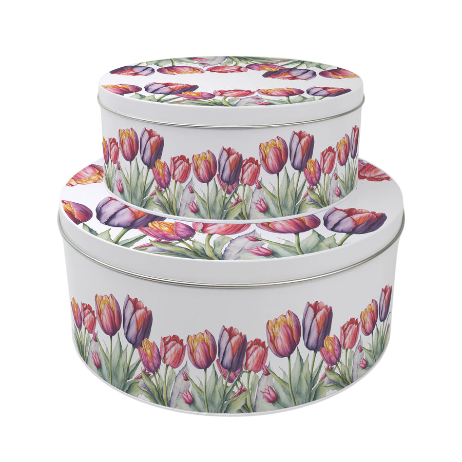 Perfect for adding beauty and brightness to any home, this set of floral round cake tins display a blooming tulips design - the ideal gift for a baker, gardener, or any lover of fresh flowers! Available individually, or as a mixed set of two.
