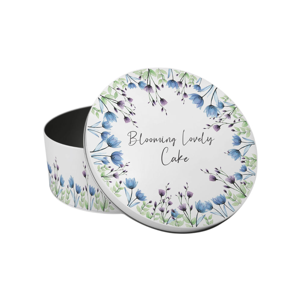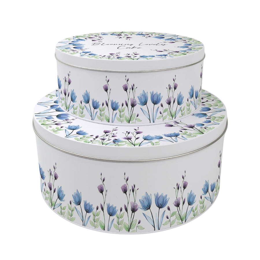 This set of floral cake storage tins is a perfect gift for anyone who creates 'Blooming Lovely Cake'! With pretty blue and purple flowers covering the tins, and green leaf detailing, these round tins are available individually, or as a mixed set of two.