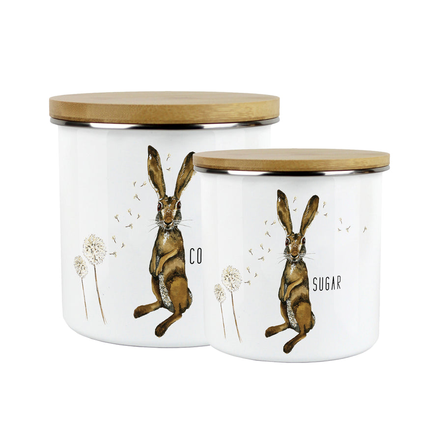 These countryside themed storage canisters feature a lovely painted hare playing amongst the dandelions, designed by artist Rhiannon Chauncey! Perfect for storing your hot drinks essentials, this range includes a variety of text options, all of which are available in two sizes so that you can choose the best suited size for your home. Ideal for adding a touch of farmhouse charm to your kitchen.