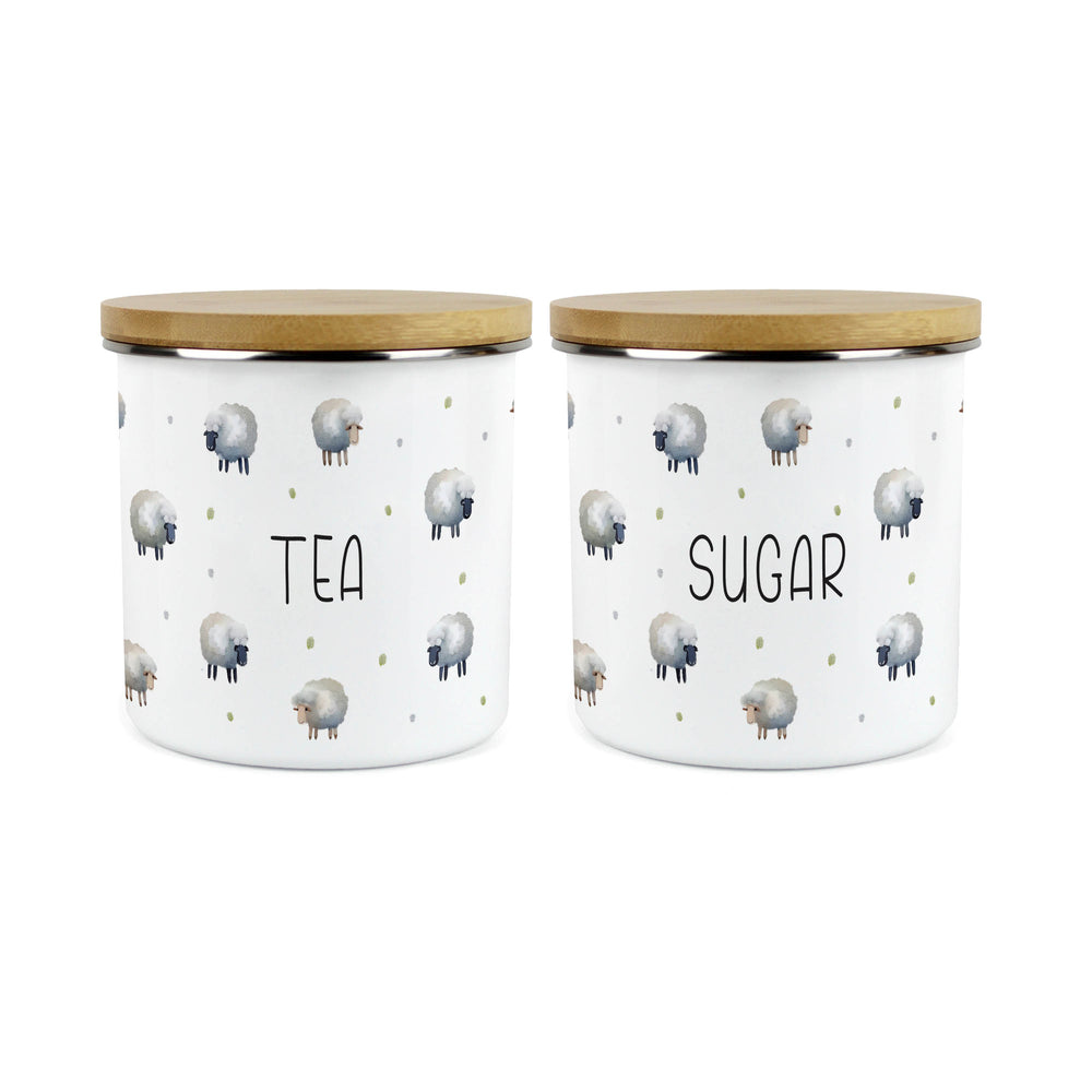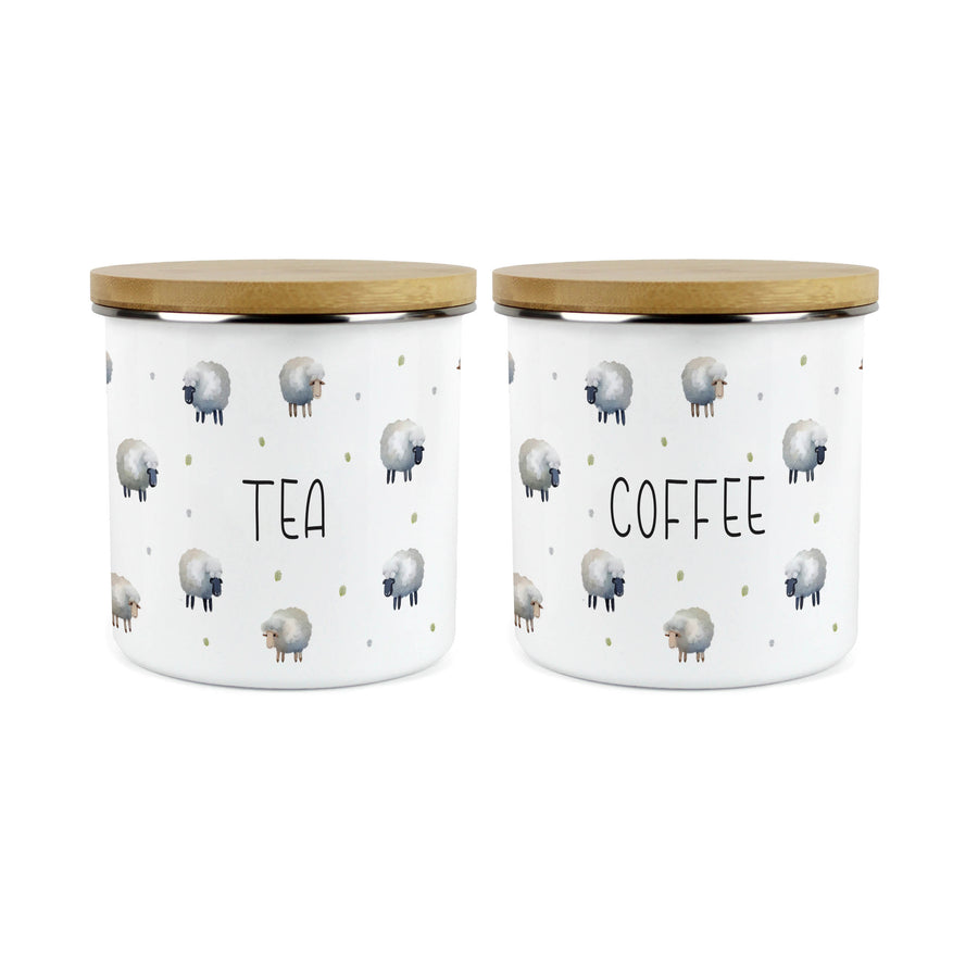 Whether you're a lover of spring when the joy of new baby lambs fill the fields of the countryside, or you simply adore the cuteness of woolly sheep at any time of year, this duo of sturdy enamel storage canisters is just the thing for you! The sweet design features cartoon-style illustrations of sheep with green polka dots spotted in between. Available in two sizes, these are ideal for adding some farmhouse charm to your kitchen.