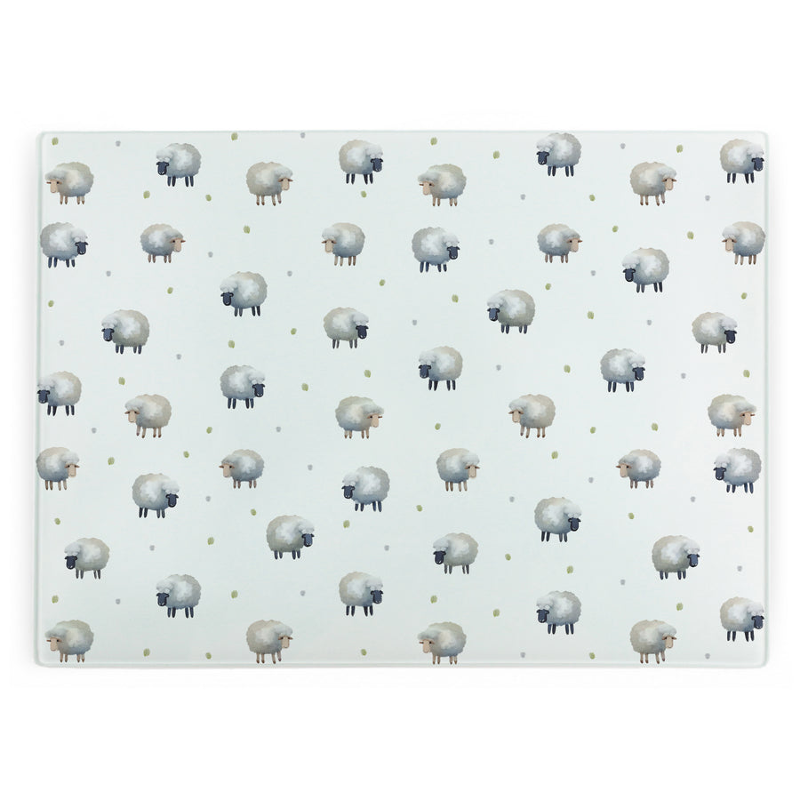 Whether you're a lover of spring when the joy of new baby lambs fill the fields of the countryside, or you simply adore the cuteness of woolly sheep at any time of year, this smooth glass worktop saver is just the thing for you! The sweet design features cartoon-style illustrations of sheep with green polka dots spotted in between - a baa-rilliant way to brighten up your kitchen counter. Available in two sizes!