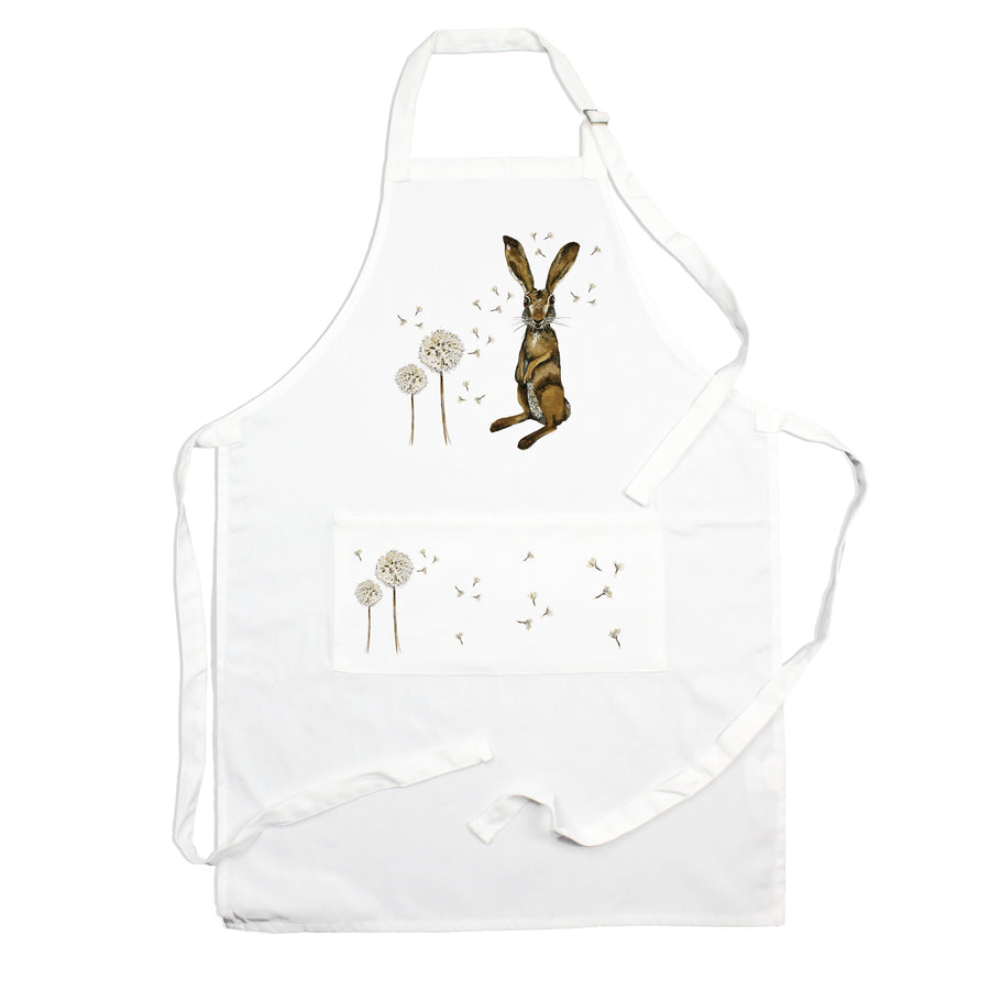 Add a touch of countryside charm to your kitchen with this lovely apron, showing a hare playing amongst dandelions! Designed by artist Rhiannon Chauncey, with a comfortable and adjustable fit, this apron is sure to protect your clothing from spills and splatters when cooking and baking. Perfect as a gift or for everyday use!
