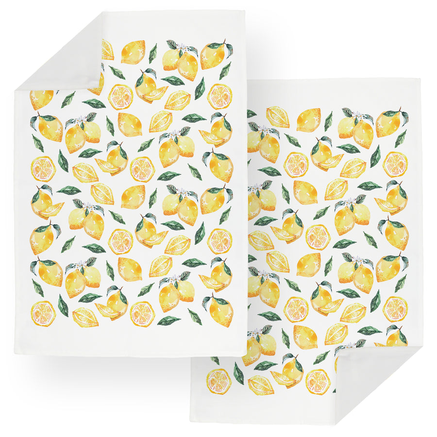 Add some zest to your kitchen with this set of bright & colourful kitchen linens! With a lovely lemon print, this tea towel is perfect for drying dishes, cleaning spills, or just for display!