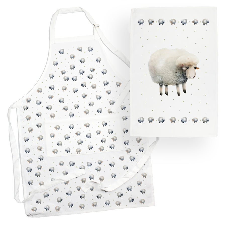 Purely Home Spring Sheep Apron & Tea Towel Set